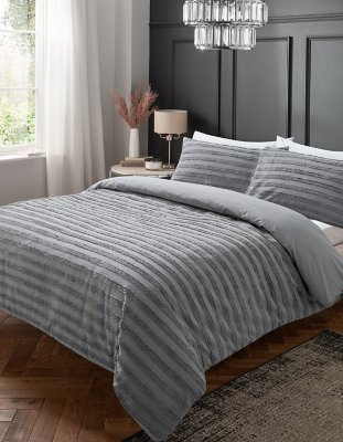Grey Luxury Tufted 100 Washed Cotton Duvet Set Home George At Asda